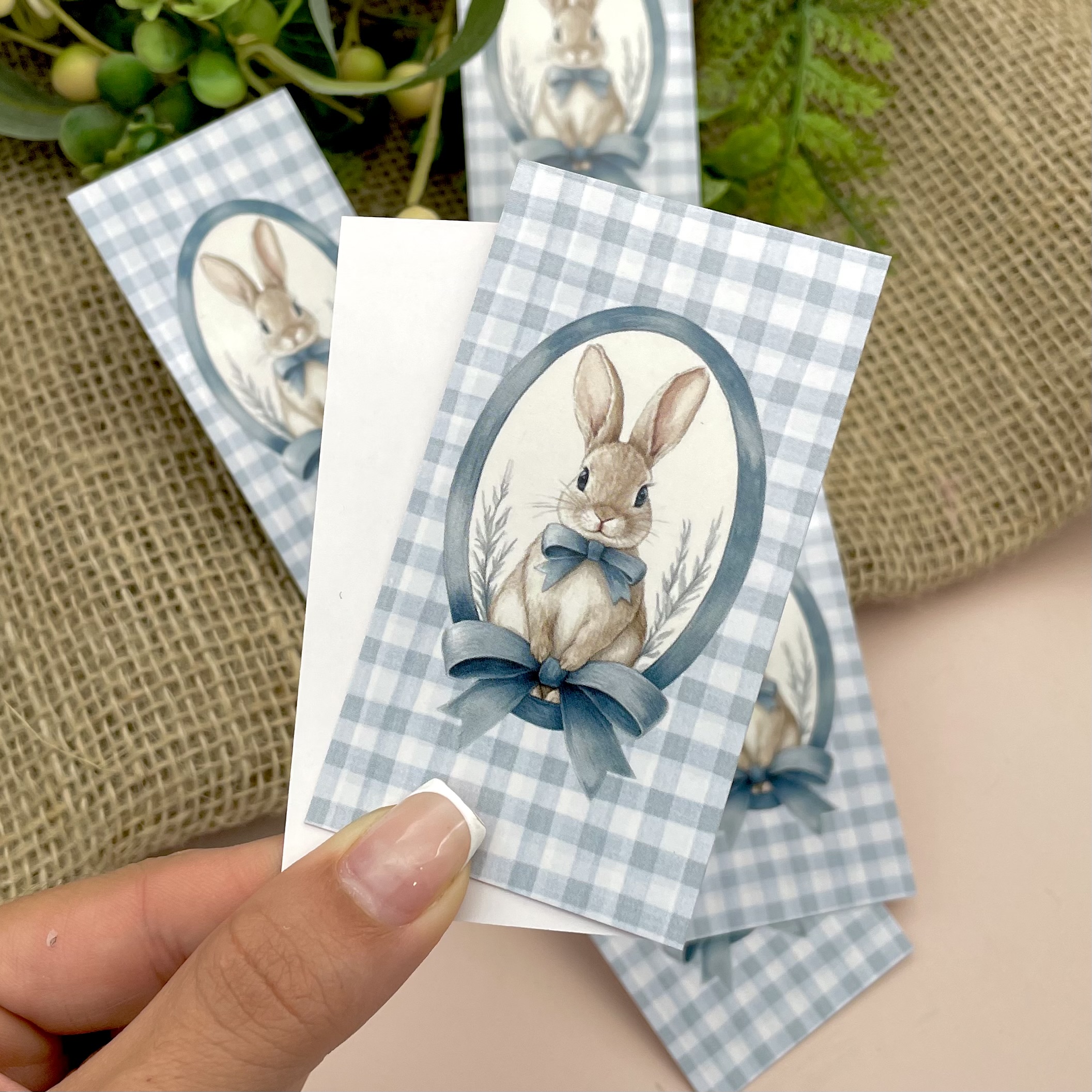 Cartão Coelho Listras Azul - Coleção Páscoa