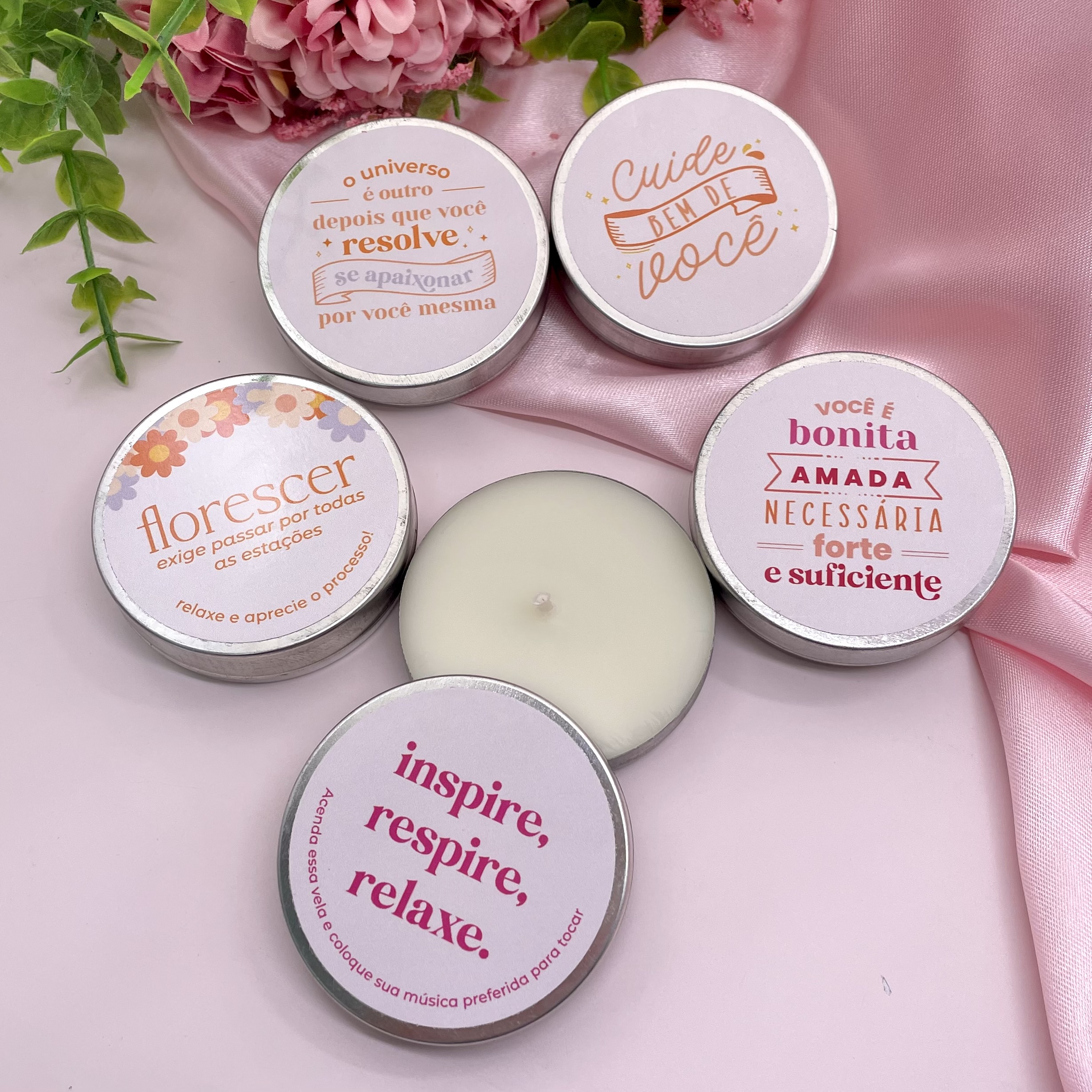 - O grande diferencial da nossa vela aromática é a FRASE SURPRESA que é revelada no fundo da latinha durante a queima. As frases são sortidas e podem ir com uma das frases: "todo dia cabe um novo começo", "você é capaz de tudo", "você está indo bem" ou "você merece coisas incríveis".