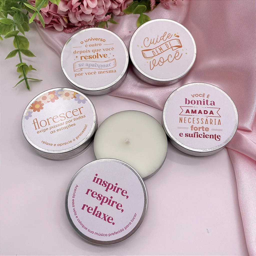 - O grande diferencial da nossa vela aromática é a FRASE SURPRESA que é revelada no fundo da latinha durante a queima. As frases são sortidas e podem ir com uma das frases: "todo dia cabe um novo começo", "você é capaz de tudo", "você está indo bem" ou "você merece coisas incríveis".