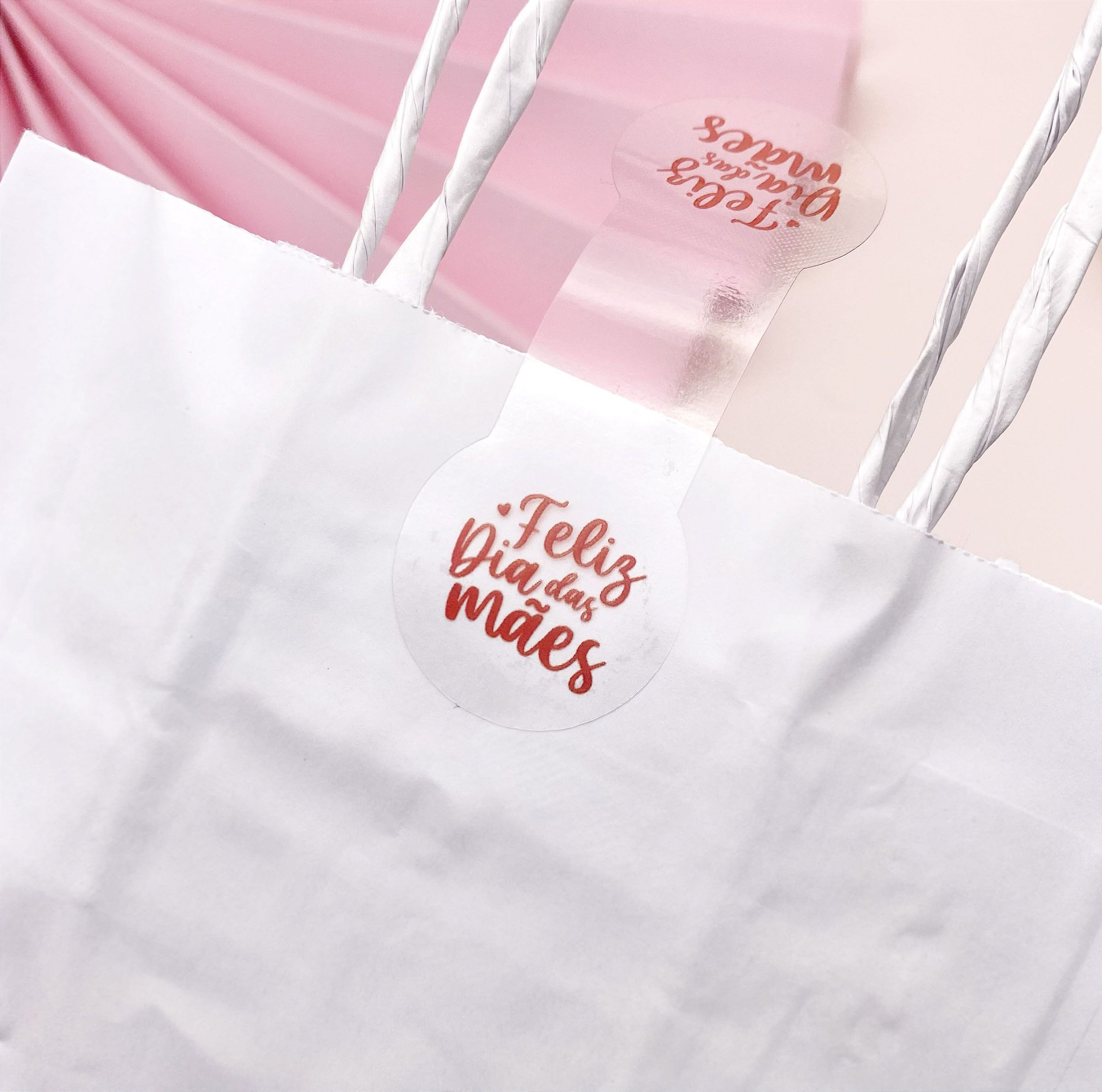 25un Lacre Adesivo Transparente "Feliz Dia das Mães" Vermelho - Coleção Dia das Mães